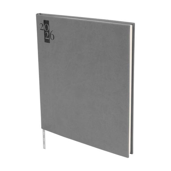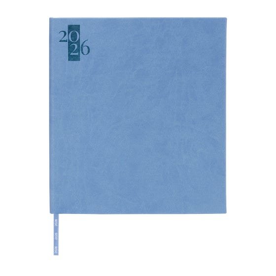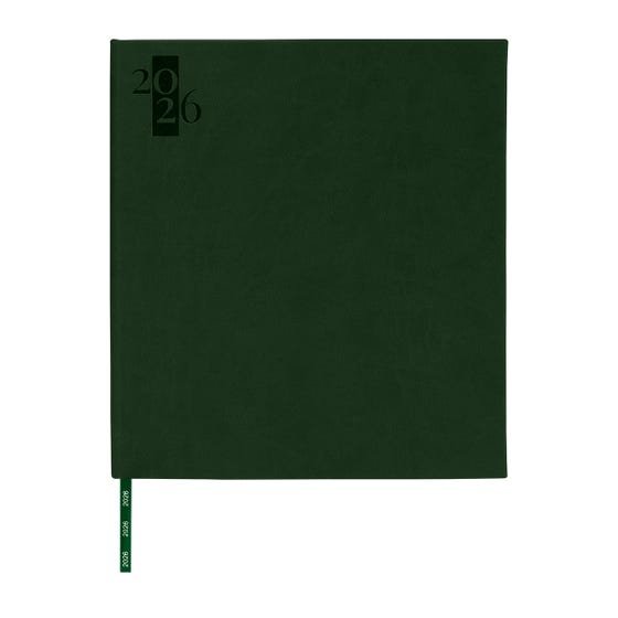 Agenda semanal con 80 hojas. Contiene datos personales, calendarios 2025-2026-2027, planeador 2026, presupuesto de gastos, seguimiento de nuevos hábitos, organizador de tareas, planeador de proyecto y días festivos. Incluye caja individual.