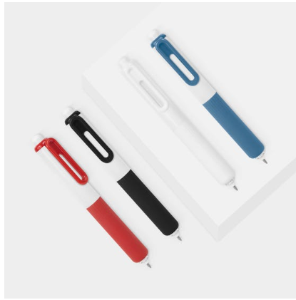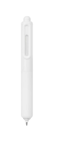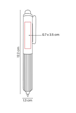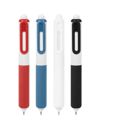 Bolígrafo de tinta de gel con grip de silicón antiderrapante. Su diseño destaca formas suaves y redondeadas. Mecanismo pulsador.