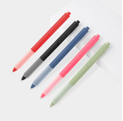 Bolígrafo de plástico con grip de silicón antiderrapante. Mecanismo pulsador.