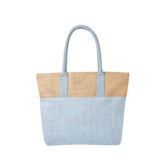Bolsa con interior laminado y asas de algodón. Compartimento principal con cierre.