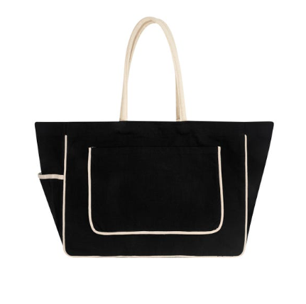 Bolsa oversize con fuelle. Cuenta con un bolsillo frontal, un amplio compartimento principal y una bolsa lateral. Se destaca por sus bordes en color natural, que le aportan un estilo auténtico. Incluye un pequeño bolsillo al interior y cierre con broche magnético. Ideal para vacaciones en resort.