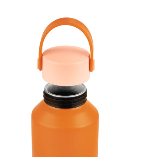 Cilindro metálico de una pared. Incluye tapa de plástico con sistema de rosca que asegura un cierre hermético. Adicional, su misma tapa incluye asa de silicón, que te permite llevarlo fácilmente a todas partes. Capacidad de 27 Oz. Incluye caja individual.