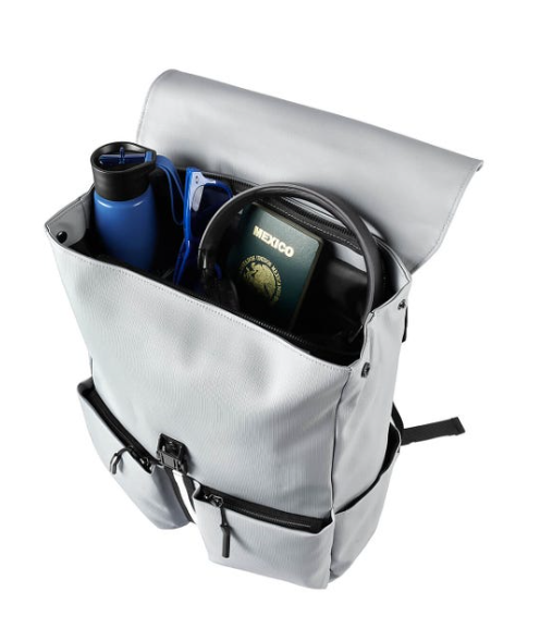 Mochila ejecutiva de diseño moderno que combina estilo y funcionalidad. Su solapa superior con broche de plástico, garantiza un cierre seguro, mientras que los broches metálicos laterales, permiten expandir el compartimento principal para obtener mayor espacio si asi lo necesitas. Cuenta con un compartimento especial para laptop de hasta 15 pulgadas, dos bolsillos frontales con cierre para objetos pequeños, mientras que sus bolsillos laterales, son adecuados para botellas o artículos de uso frecuente. En la parte posterior, incluye un bolsillo de se seguridad con cierre, ideal para guardar pertenencias de valor. Una opción prácitica para quienes buscan organización con un toque profesional.