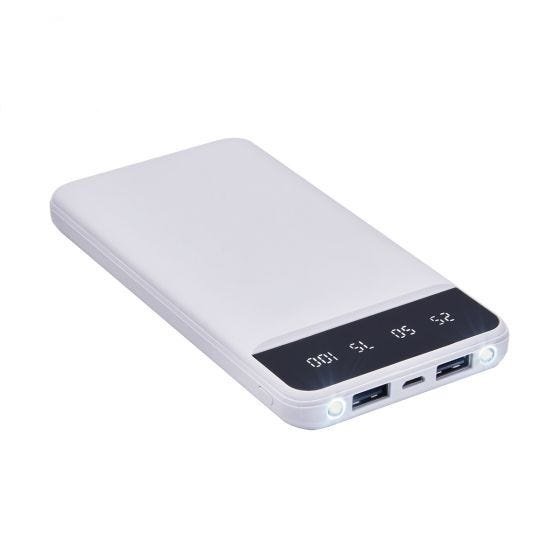 Batería auxiliar para smartphone, capacidad 10,000 mAh. 2 Puertos USB y 1 micro USB. Cuenta con display de indicador de batería Y 2 LEDs con función de lámpara. Incluye cable micro USB.