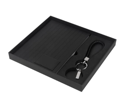 Set ejecutivo de 2 piezas, que incluye libreta con 80 hojas a raya y llavero. Libreta con cubierta de curpiel , con elegante detalle termo grabado y separador de hojas. Cuenta con un elegante llavero con asa trenzada, placa metálica y parche circular de PU. Incluye caja de regalo.