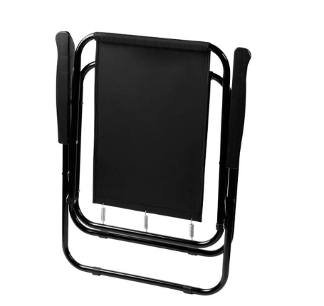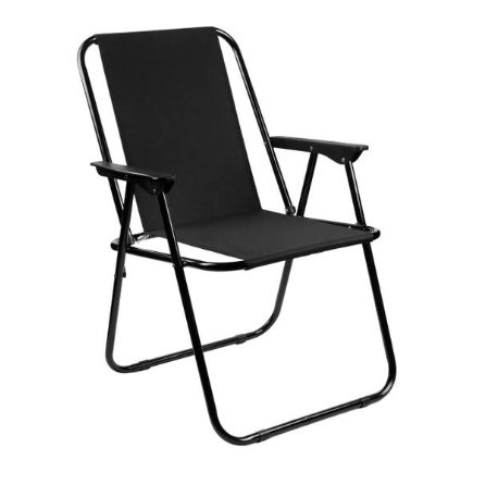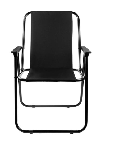 Silla plegable con descansabrazos. De estructura ligera, fácil de armar y guardar, ocupando poco espacio al estar plegada.