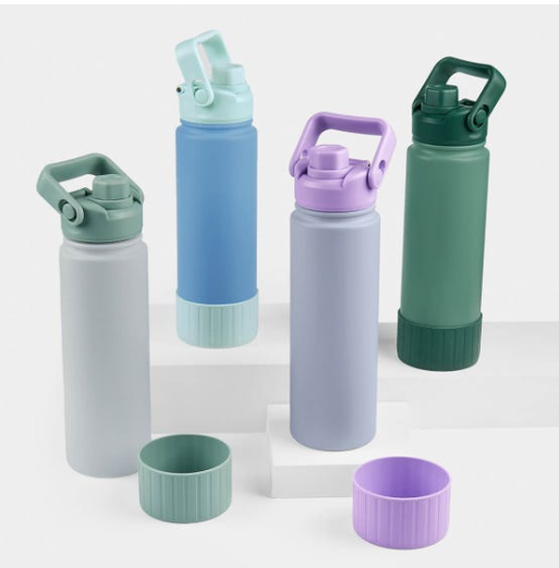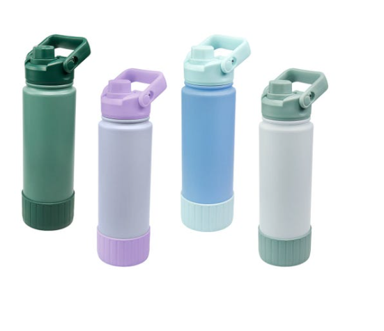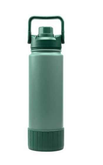 Termo doble pared. Cerrado al vacío. Pared interna y externa de acero inoxidable. Tapa y sobre tapa de plástico con diseño innovador, su cierre de rosca permite un sellado seguro que permite beber fácilmente. Cuenta con un asa plegable para llevarlo a todos lados, ideal para oficina o actividades al aire libre. Incluye una manga de silicón antiderrapante sobre la base, que permite protegerla de golpes y raspones. Mantiene tus bebidas calientes por 12 hrs y frías hasta 16 hrs. Capacidad de 24 Oz. Incluye caja individual.