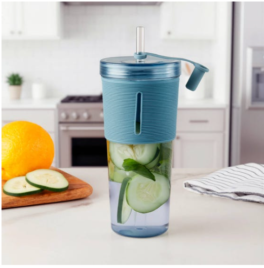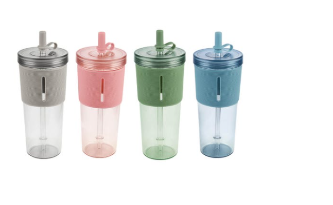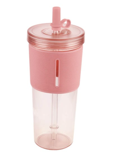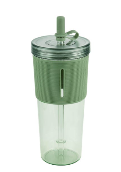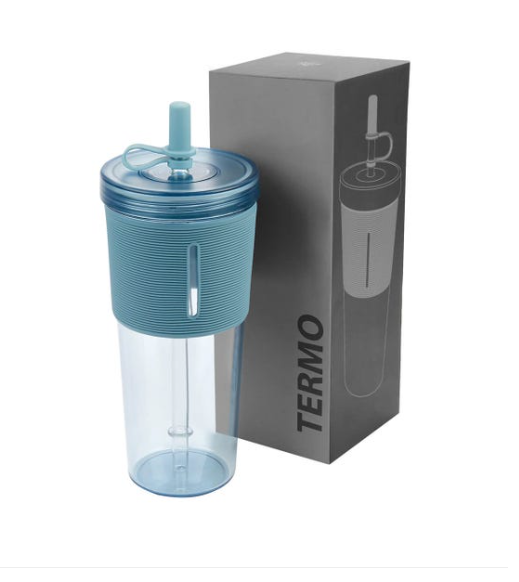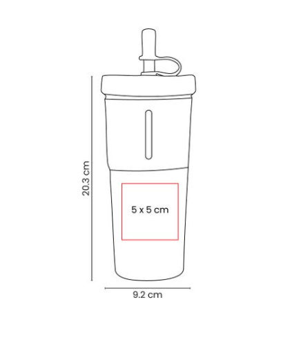 Vaso de plástico de una sola pared. Tapa de plástico con sistema de rosca. Incluye popote reutilizable con tapón de silicón. Su diseño con manga de silicón antideslizante, proporciona un agarre cómodo y seguro. Capacidad 20 Oz. Base de 6.7 cm de diámetro. Incluye caja individual.